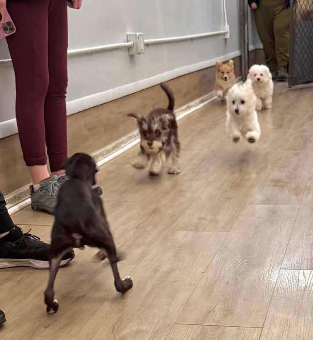 Our supervised playgroup, led by Lea Colon—one of our owners with 30 years of dog training experience—provides a safe and welcoming space for puppies and their owners.